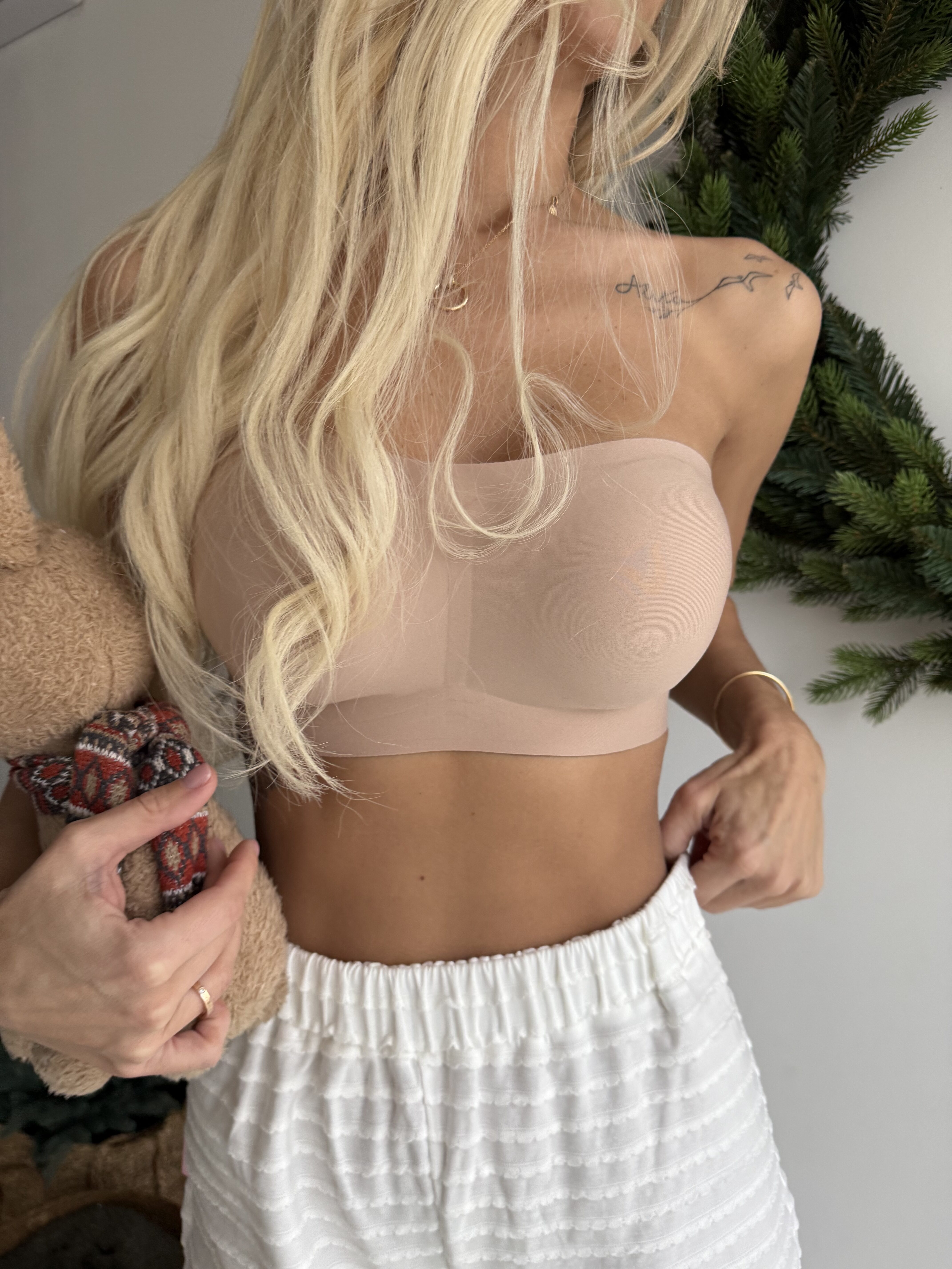 Бесшовный базовый топ бандо со съемными чашками на любой случай. Широкий пояс дает комфортную посадку, при этом не спадает — внутренняя сторона просилеконена. Идеально для образов , где нужно открыть плечи. Приятная к телу микрофибра в двух базовых оттенках: черный и нюдовый. Топ представлен в трех размерах: S M L